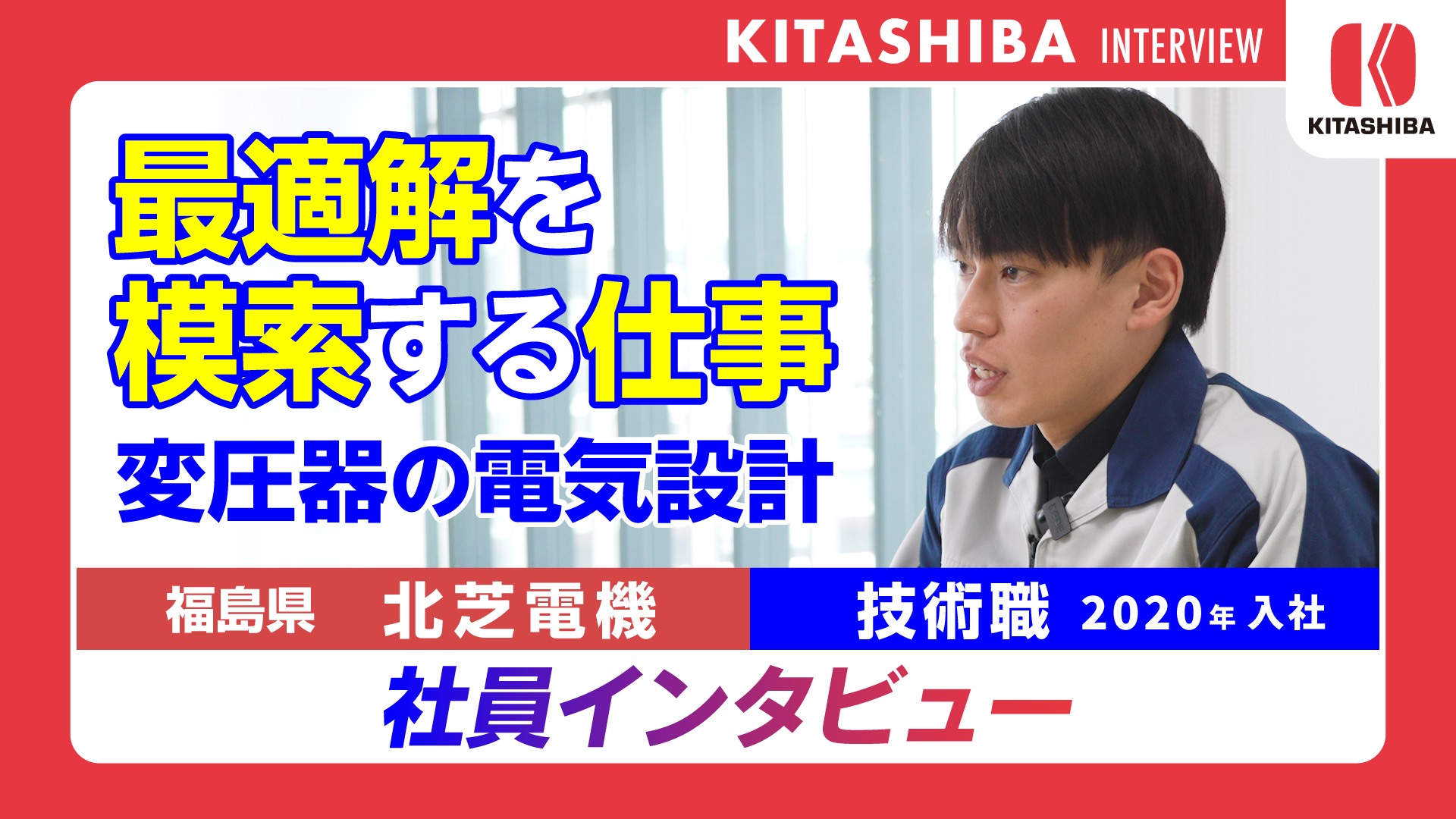 技術職向け採用インタビュー動画を、公式YouTubeチャンネルにて公開しました🎬 今回登場するのは、工学部卒の技術職社員。「都心部か、地元か」という就職活動時の悩みの末に、福島県の重電メーカー・北芝電機を選んだ理由、そして入社から5年が経った今のリアルな想いを語っています。 若手エンジニアならではの視点も見どころです。 理工系学生の皆さま、技術職に興味のある方はぜひご覧ください👀 ▼ インタビュー動画はこちら https://youtu.be/hEd4FAJfTfE?si=MhQ5F2BIyKlETScU ▼ショート版はこちら https://youtube.com/shorts/r_57PNRpI6w?si=4OWRxKvFr1AzyTqo 北芝電機公式YouTubeでは、当社らしい魅力を発信しています。ぜひチャンネル登録お願いします! ▼ 北芝電機公式YouTube https://www.youtube.com/@Kitashiba-youtube