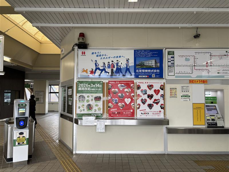 2026年1月27日より、JR金谷川駅の窓口上に、北芝電機のサインボードを掲出いたしました。今回のデザインは、